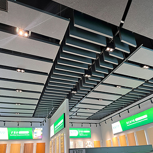 Defletores acústicos suspensos de fibra de vidro para teto de biblioteca