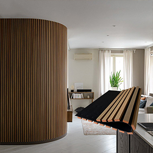 Soluções elegantes para paredes acústicas de ripas de madeira